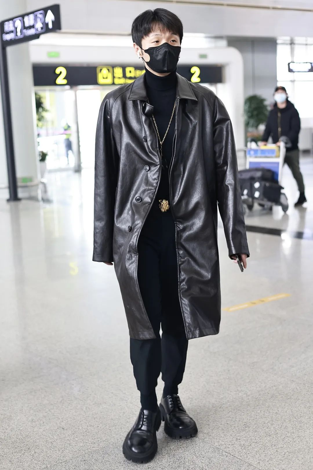 李榮浩(精緻版)又出街咯!一件黑色長款皮衣搭半高領針織衫,下身穿九分褲配厚跟德比鞋,內裡都用金屬質感的吊墜和腰帶做了點綴,時髦有型架式巨足!浩哥真的越來越酷惹~