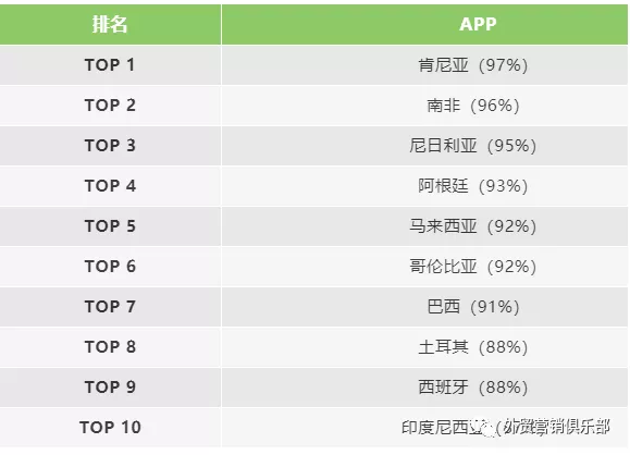 在滲透率方面,在16-64歲的網民中,有7個國家的WhatsApp滲透率超過90%。