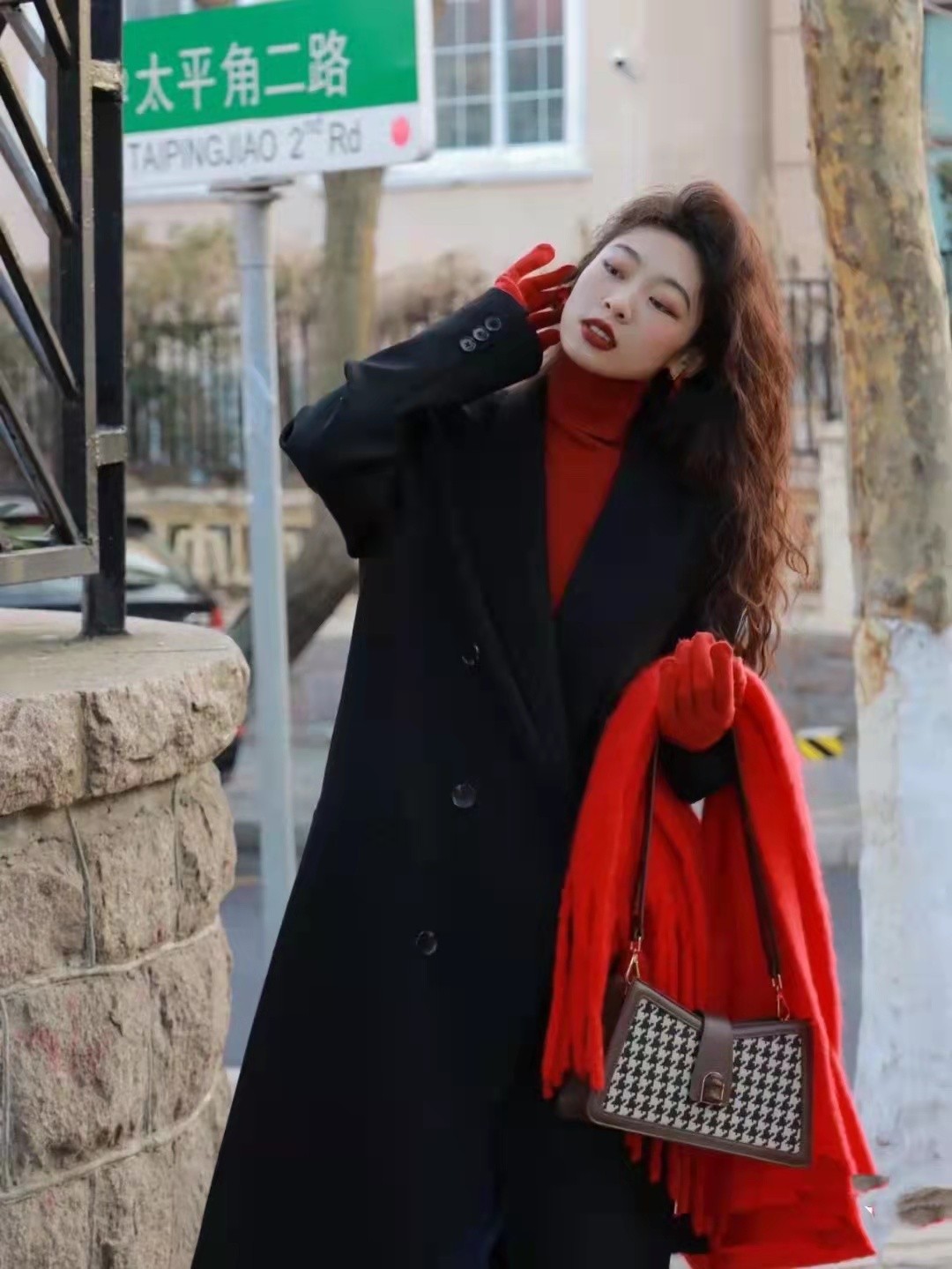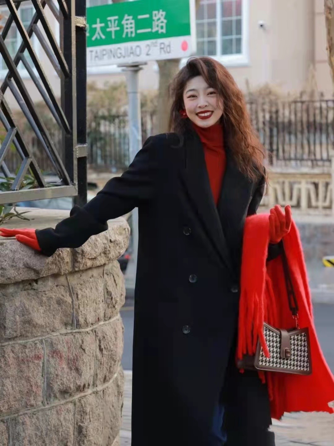 裡面選擇一件紅色的外套,搭配一件紅色的圍巾,真的很喜慶。走在人群當中,吸睛度那是足夠好,不會覺得太過單調。