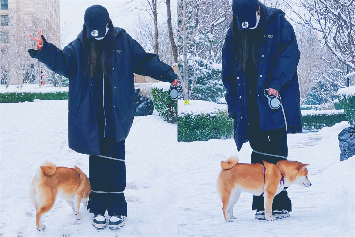 楊冪私下也是真的很愛時髦,哪怕是出門遛狗看雪也穿得很時髦好看。舒適的運動街頭感穿搭搭配棒球帽,輕鬆舒適同時也保暖防風,私服女王真的每時每刻都在好好穿~