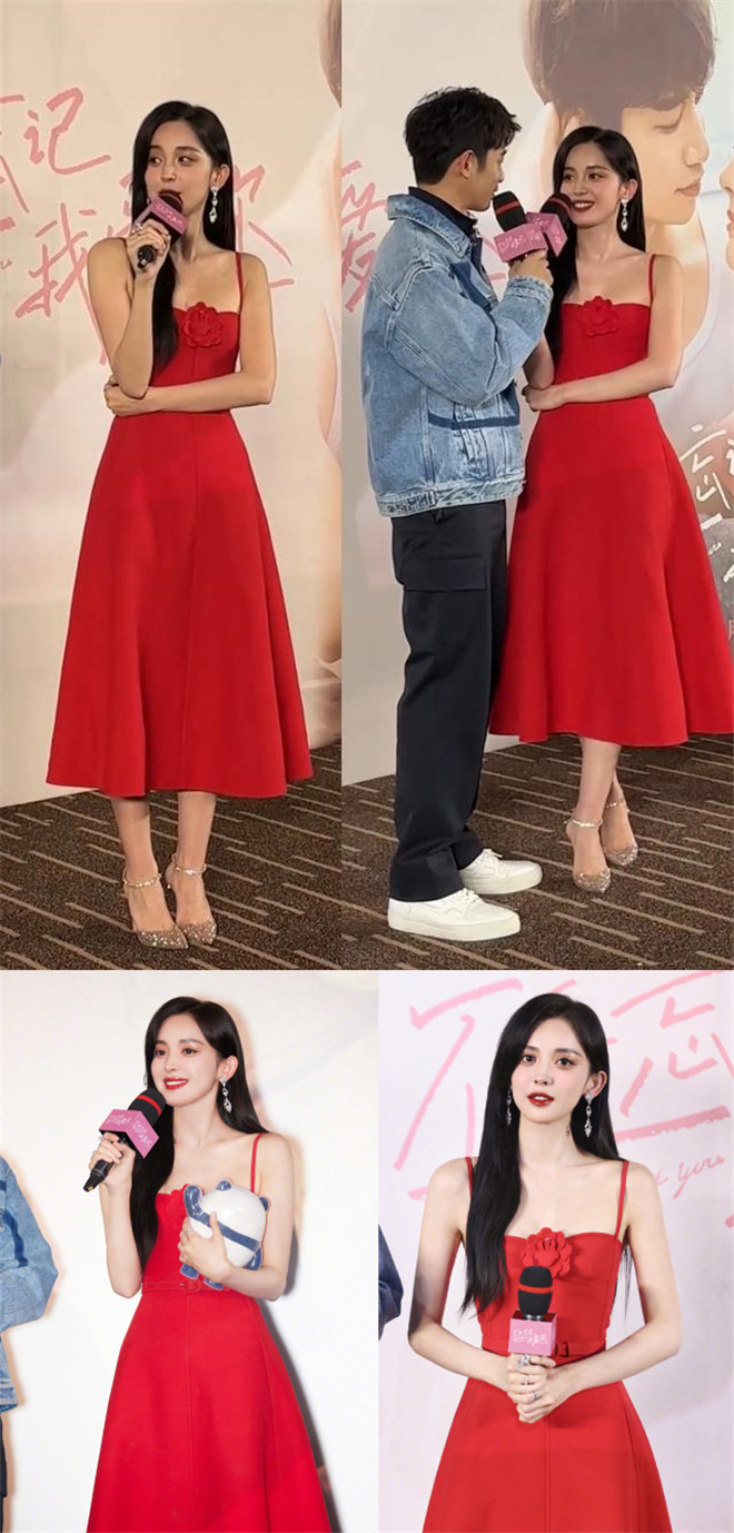 現場活動,娜紮選了一套來自Valentino的喜慶的紅色連衣裙亮相,搭配了一雙亮閃小高跟,為喜氣洋洋的紅色增添幾分貴氣,如果非要挑一個缺點,就是髮型可以更好,如果選擇乾淨清爽的後披發,整體效果會更利落更chic~
