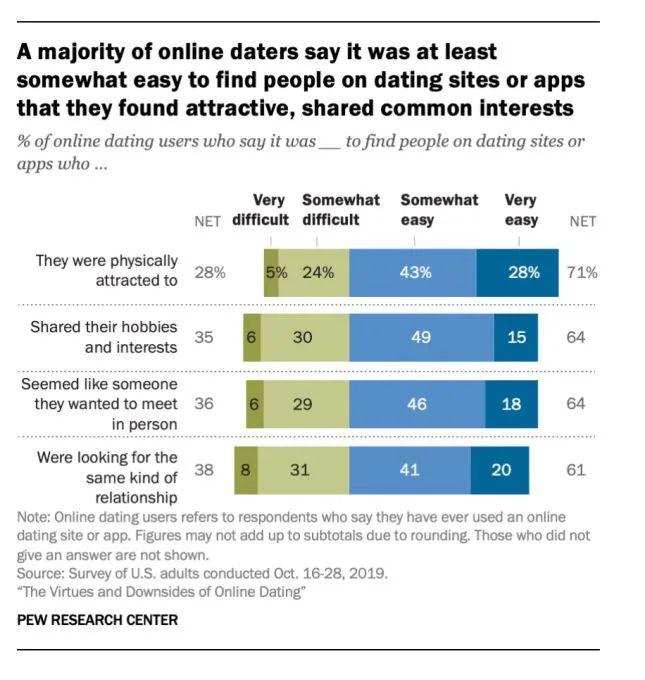 根據2019年美國的一項統計,30%的美國成年人使用了約會軟體(網站),另外,有12%的美國成年人表示,他們通過在線約會找到了長期戀愛關係。