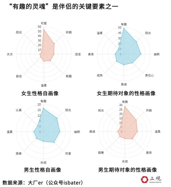 其中,性格品質是他們最關心的一個方面,大廠的年輕人都渴望找到另一個「有趣」的靈魂。