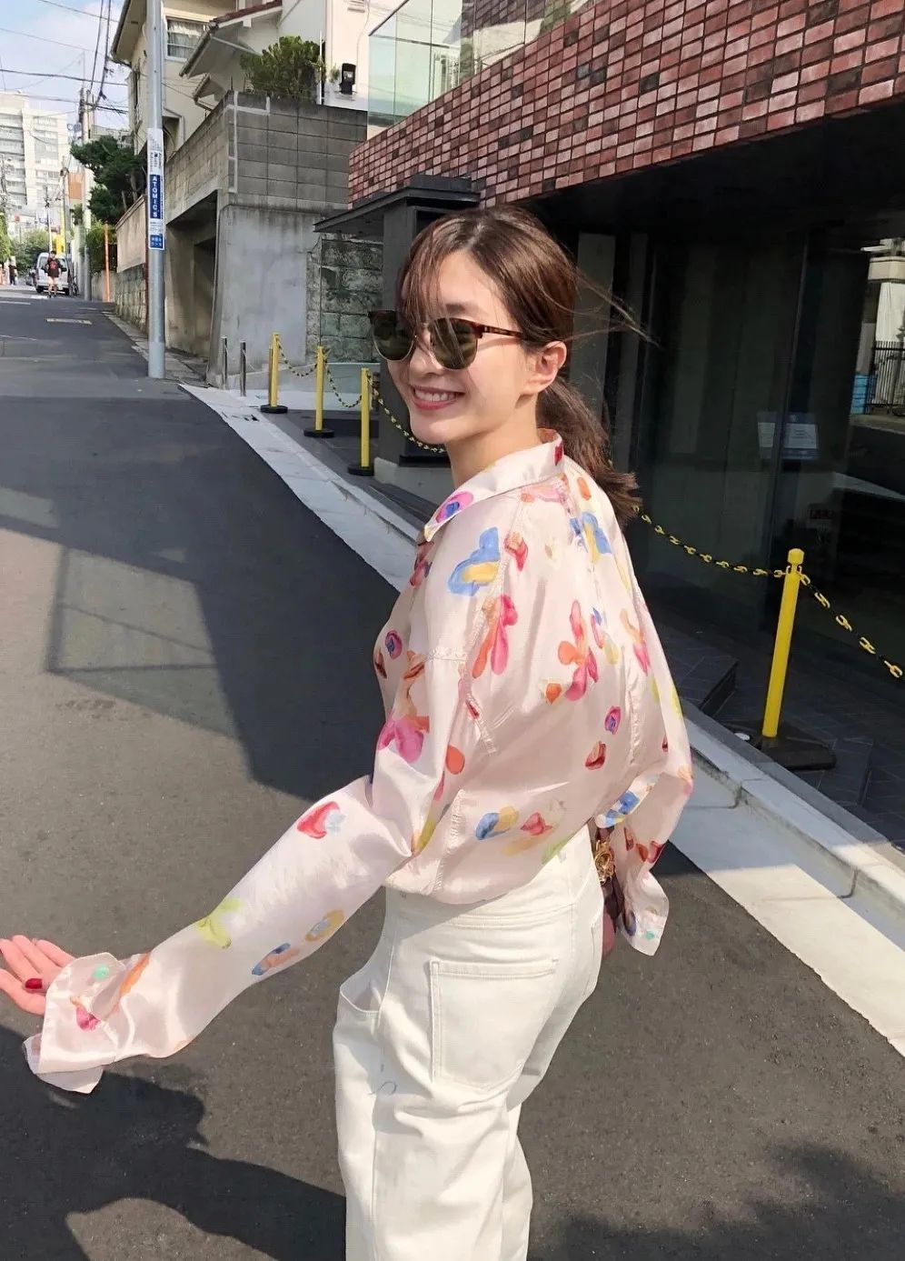 比起普通的白襯衫、格子衫,花朵襯衫有一種解鎖乏味的能力。和基礎單品的白褲子搭配就很潮。