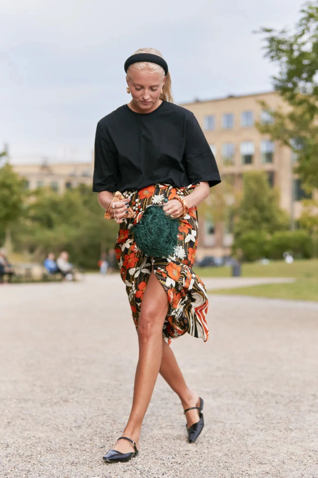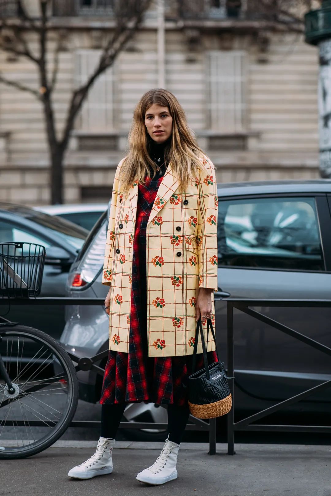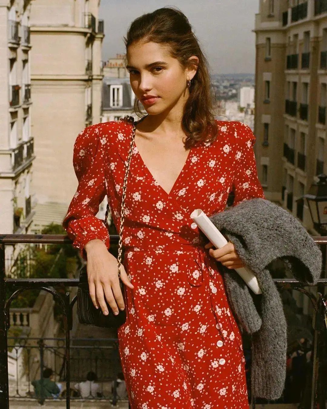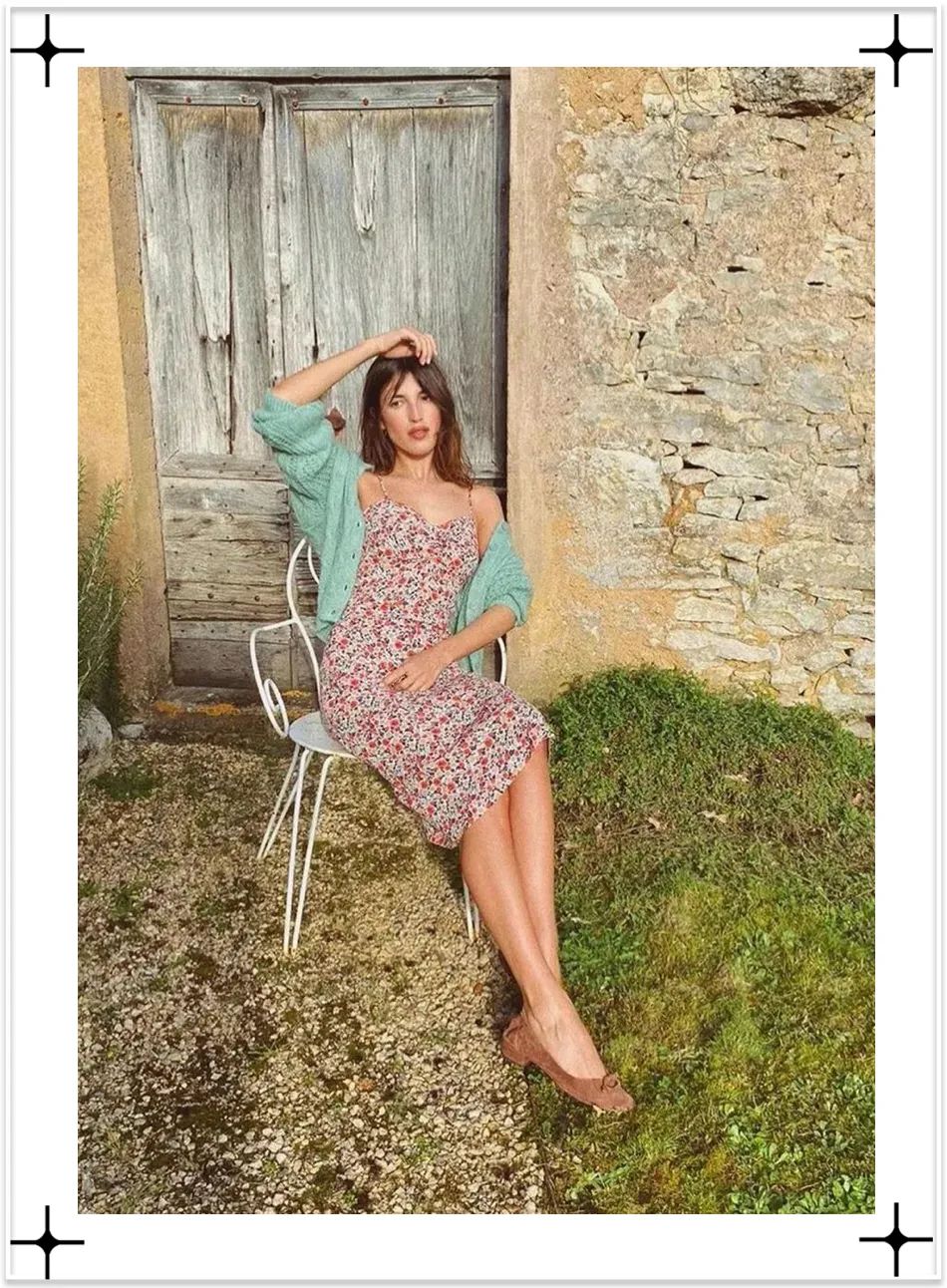 法國博主穿碎花裙通常愛搭配一雙舒適的平底鞋,增加女生味和慵懶感,高妹可以參考。