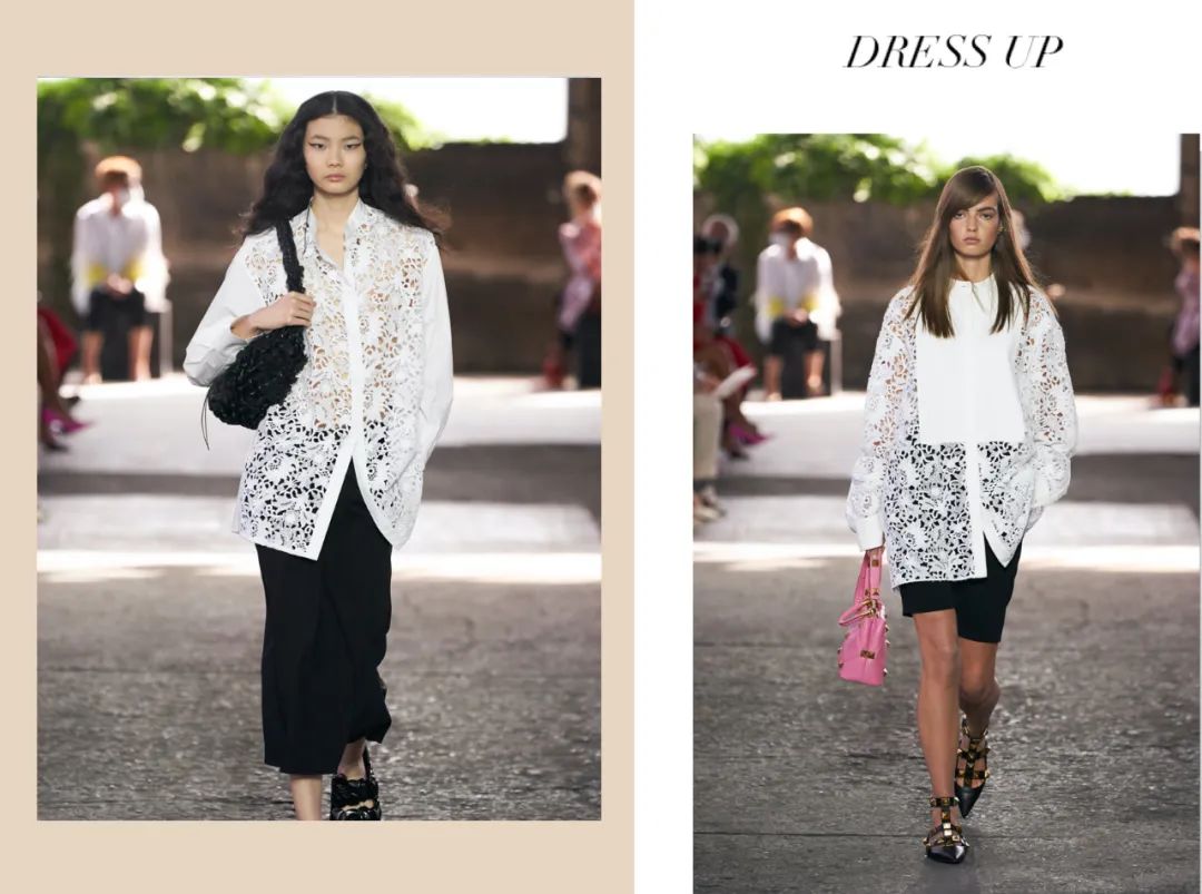 鏤空花朵襯衫能豐富整體面料搭配的質感,不規則的形狀隱喻又有趣,個性十足。