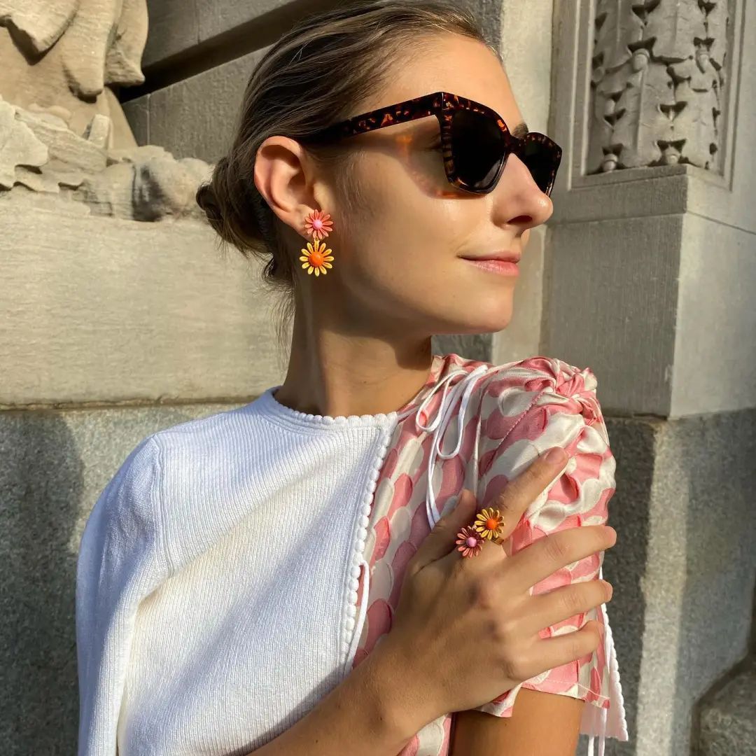 前段時間看到迪麗熱巴戴花花耳飾的圖,元氣又可愛,這對花著實開到了編輯心裡。