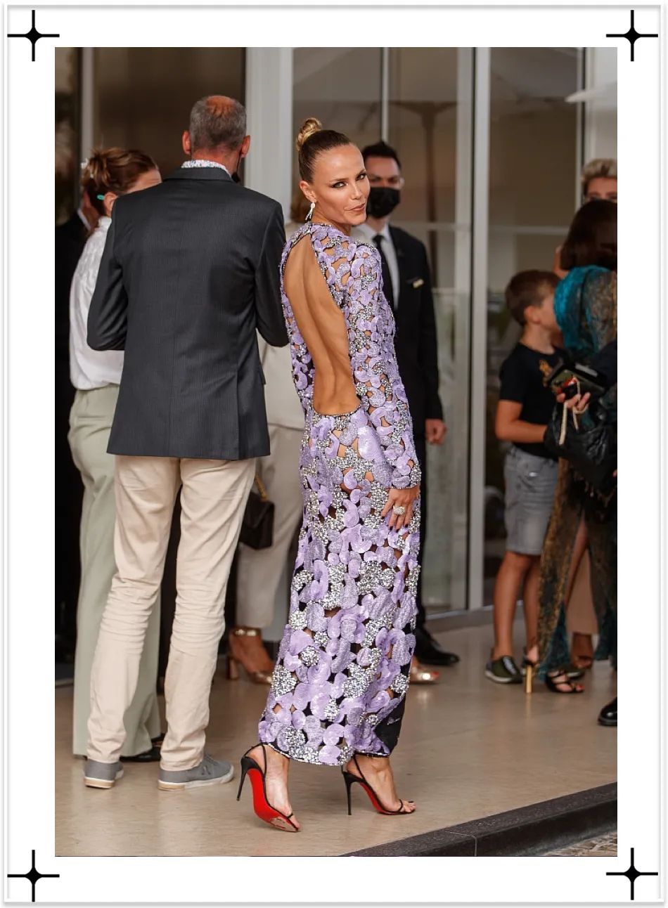 娜塔莎·波莉身著紫色鏤空花朵開衩長裙亮相戛納電影節,美腿、美背吸睛氣質絕。