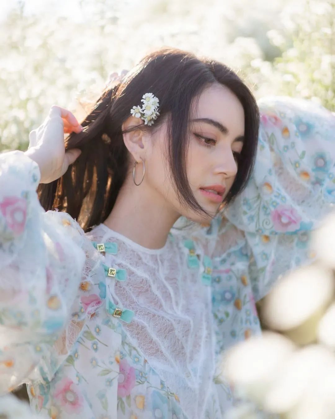 來自泰國的Mai也經常在INS中曬出花花穿搭,用花朵呈現出俏皮的一面。