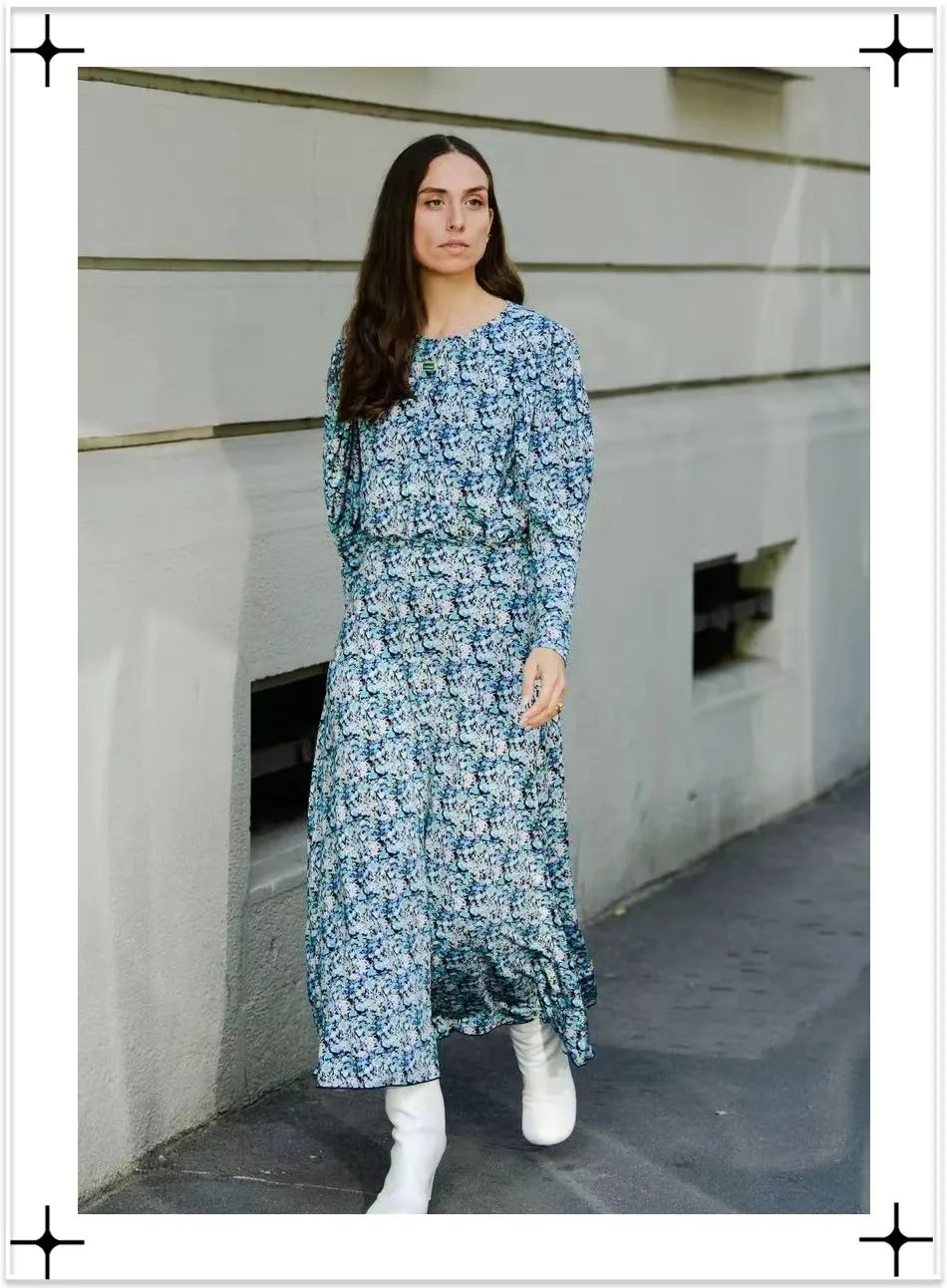 碎花裙本身就有一定的膨脹效果,過長的裙裝容易顯得拖拉,且日常穿不夠方便,所以再長也不要超過腳踝哦~