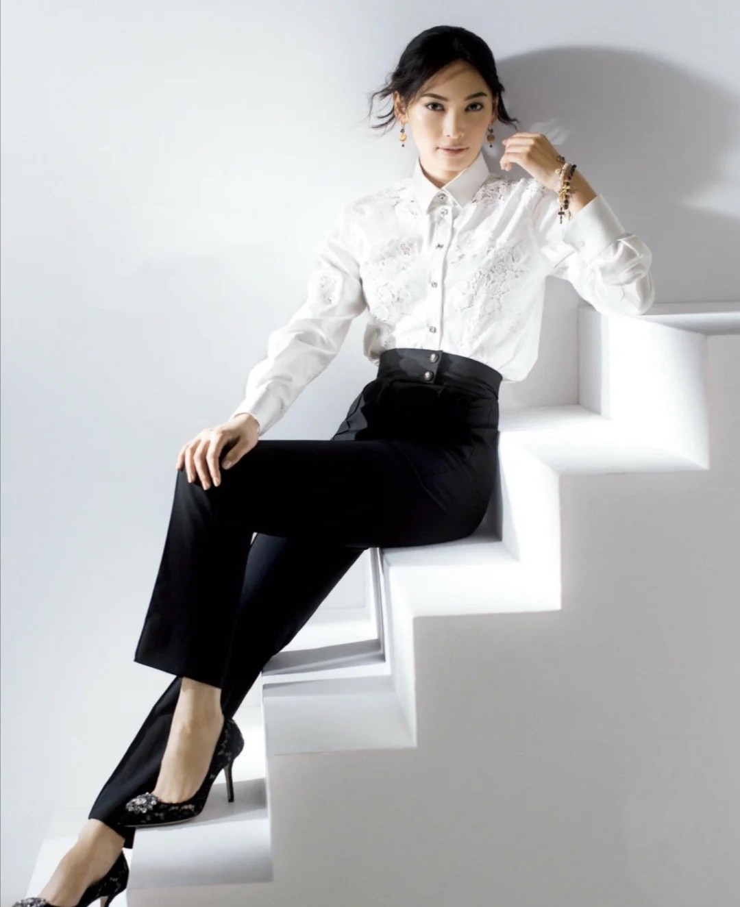 但如果在選款上面沒有到位,很多女性駕馭白色襯衫就無法呈現出過足的時尚感,最好的方式就是選用和自己身材匹配的白色襯衫。像圖中的這件單品,它具備稍微修身的設計,不會因為服裝的原因而使得身材變得不那麼協調,配合黑色西裝褲,經典的穿搭永遠最容易俘獲人心。