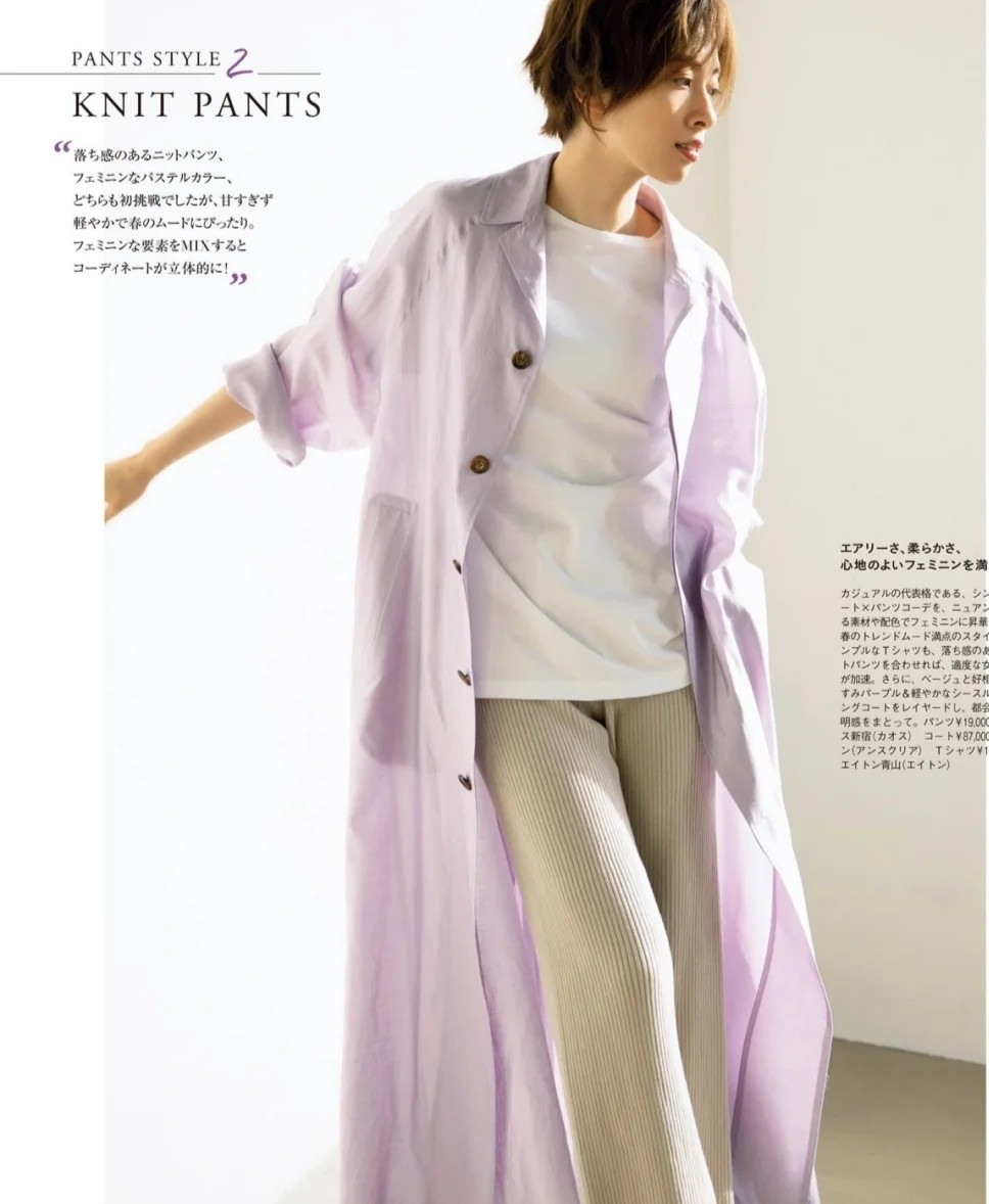 像這款白色長褲,它不是特別緊身的設計,因此需要具備極為苗條的身材才能駕馭得了這件單品。配合瀟灑一點的服裝,利落又大方。