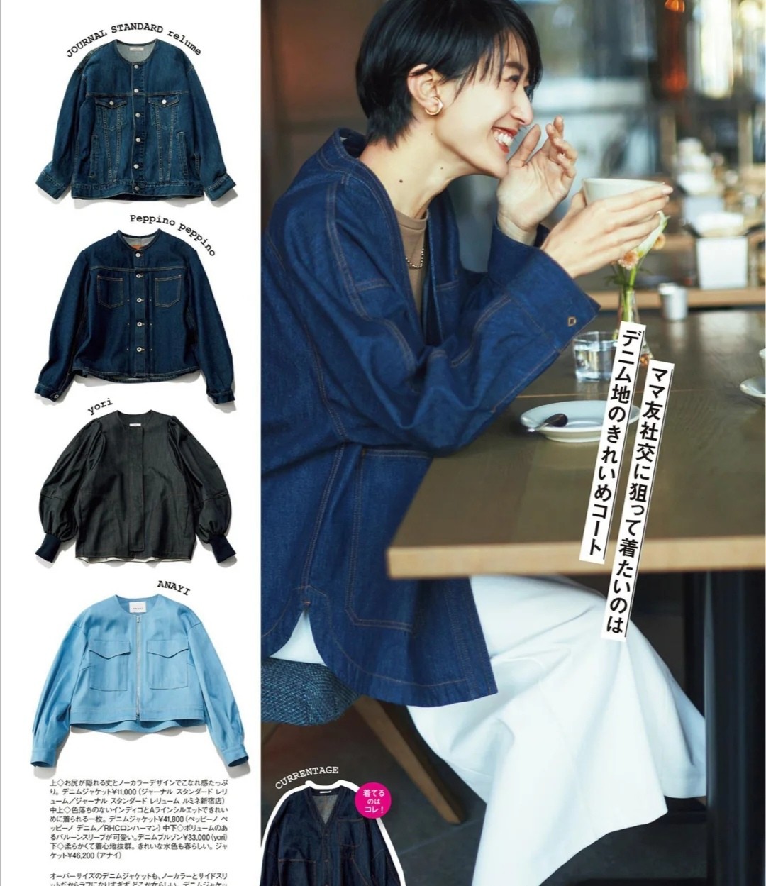 這件白色半身裙匹配的是藍色的牛仔外套,通過極為清爽的色彩碰撞,來演繹出減齡的作用,減輕女性身上的老氣感。