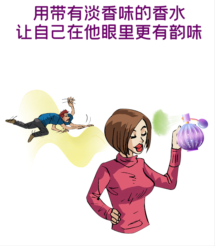 男生都喜歡聞女友身上淡淡的香味,這種味道會引起男生想親近你的沖動。所以,在每次見男友前,應該用一款味道小但香氣好聞的香水,不僅增加你的魅力,也讓男友覺得你在見他前進行了精心準備。