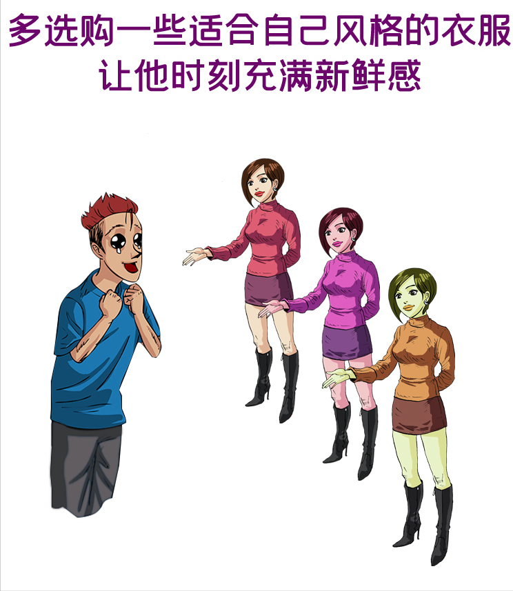 要根據自己的外貌特征選擇適合自己款式的衣服。在不同的場合跟男友約會時換著穿,讓他永遠「嘗鮮」。比方說可以從顏色和面料入手,適當的搭配可以讓你看起來充滿風韻,呈現出十分吸引人的魅力。