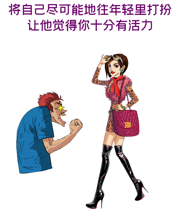 男人都喜歡年輕有朝氣的女生,你可以穿一些能將自己裝扮年輕點的衣服,梳一個流行的髮型,讓自己時刻保持輕鬆愉快的心情等,這樣就會讓你從內而外地煥發出一股朝氣。