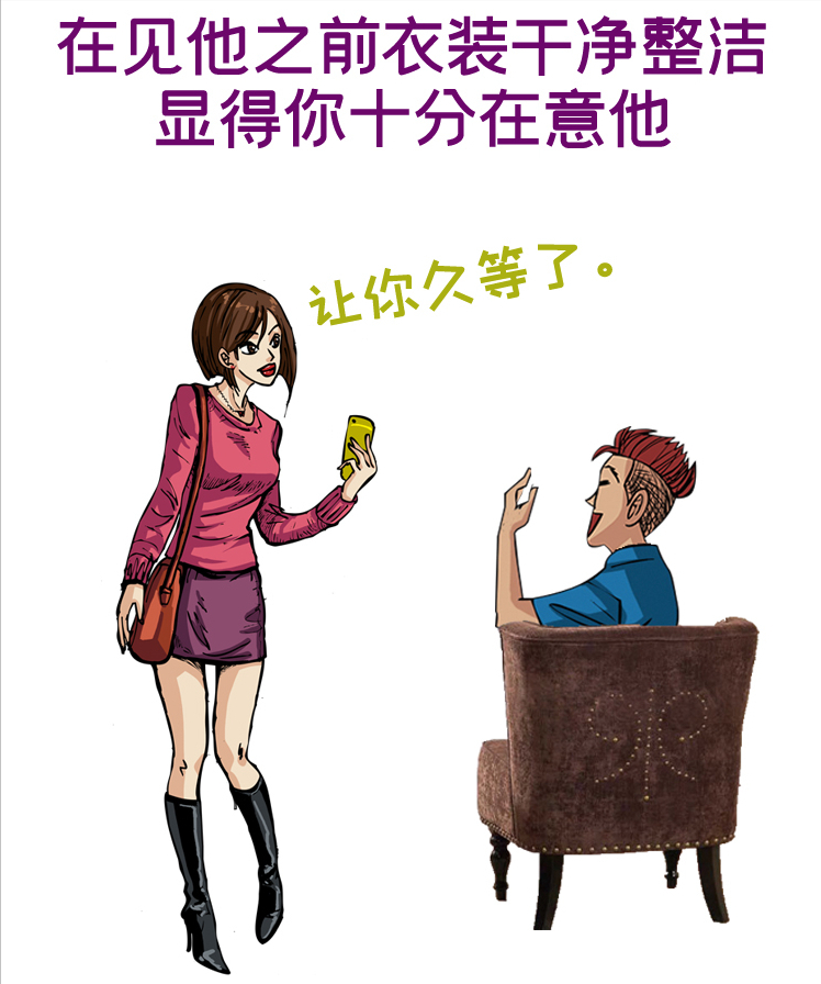 試想假如你蓬頭垢面地見男友,他心裡會十分抵觸你,覺得你每次跟他的約會都在敷衍,所以見面時候一定要確保自己衣裝乾淨整潔,讓對方感受到你戀愛態度十分認真。