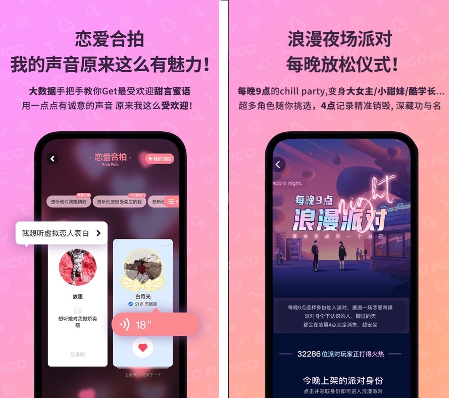 PicoPico是一款超好玩的社交類軟體!甜甜戀愛、親親群聊、兄妹互寵、一起脫單、暖心陪伴,五種匹配模式,可以根據你的需求調整,邂逅浪漫。