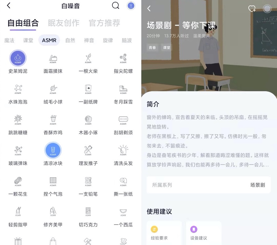 內含海量ASMR,喜歡聽的朋友一定知道那種顱內發麻的感覺,連脊柱都酥酥的,超令人沉迷。我最喜歡的莫過於史萊姆和冰塊的聲音了。還有令人蘇斷腿的場景劇,好像真的在談一場甜甜的戀愛。
