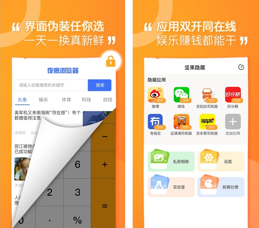 它是一款很實用的加密APP。基礎隱藏功能它都有,最好玩的是,隱私空間內的應用消息還會調整為新聞通知,半點兒也不漏關鍵資訊。還有閃電切換模式,遇到緊急情況,一鍵切換到新聞界面,多重保險,無懈可擊。
