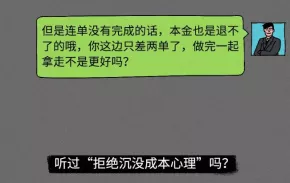 刷一單成功,給予小額返利,增加真實性。之後投入成倍增加,會要求一次性刷夠三單、五單、十單甚至更多單後再返款。當事人不知不覺在「拒絕沉沒成本心理」攻勢中淪陷。