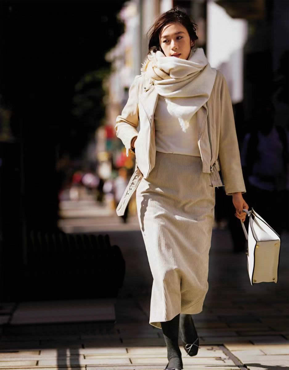冬天的灰色大衣或者外套,內搭灰色毛衣、下配白色直筒裙,演繹出孤傲的清冷模樣。孑立卻不單薄,獨立且清醒,這就是灰白配的風格語言。