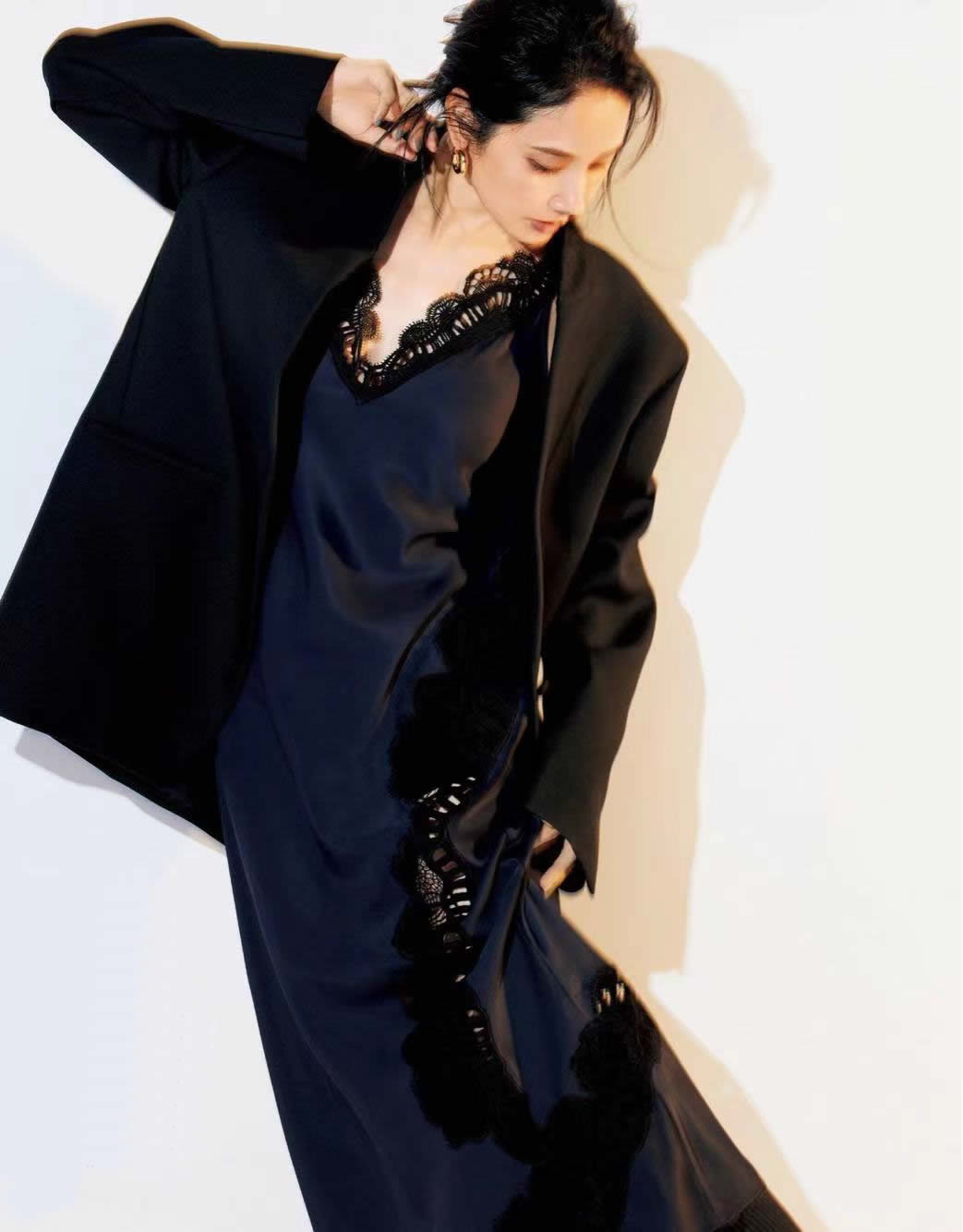 借助線條廓型、面料材質,力克沉穩黑色單一的穩重視感,賦予更多百變風格註解,激活黑色衣服風姿綽約的嫵媚姿態,與女性的溫柔更協調。