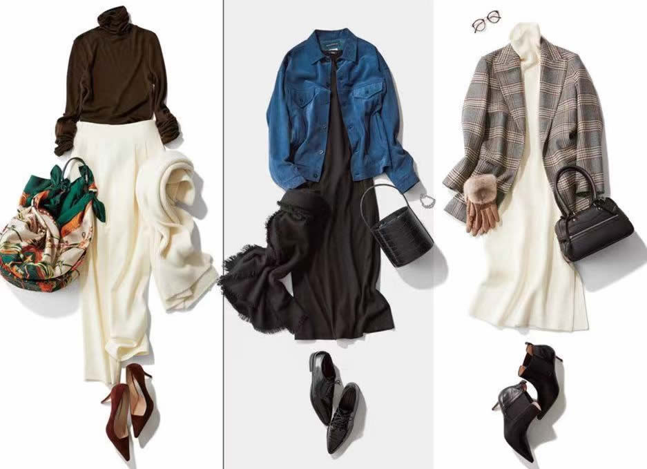 毫無例外,這3套搭配都用了混搭疊穿法來贏取時髦與溫度。休閒與淑女,優雅與舒適,並不違和。只要有白色的深遠留白,以及黑色的大氣承托,想要的好看唾手可得。