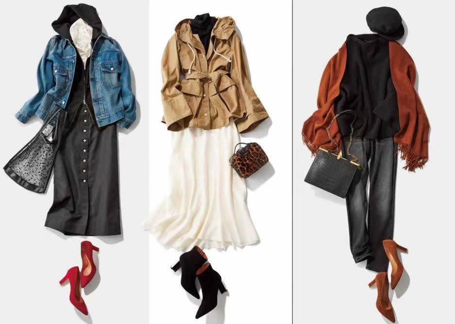 另外,鞋子、包包的配合點綴,全憑需求和風格而定,也是增加時髦的籌碼。