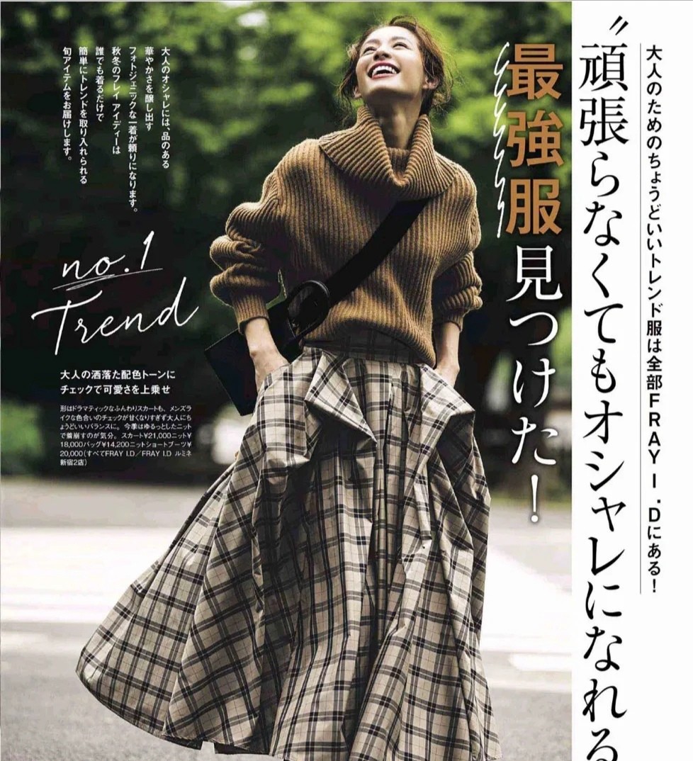 將針織毛衣和半身裙配合在一起,讓成熟女性散發出優雅的風采。針織毛衣的色系選用的是大地色,配合的格紋裙色塊不要太多太雜。