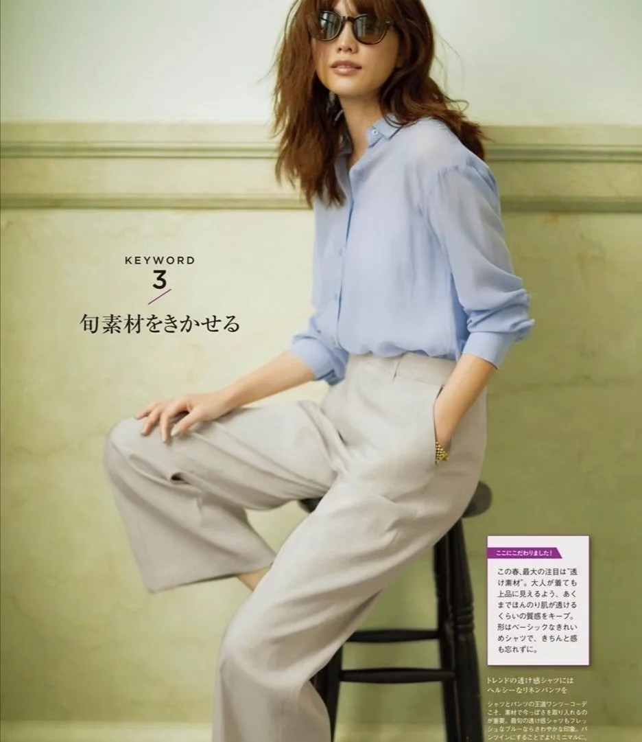 淺藍色的襯衫,它時刻能夠呈現出一種清新的穿搭環境,配合顏色基礎大方且款式修飾腿型的長褲,可以讓女性輕輕鬆松找到通勤穿搭的模板。