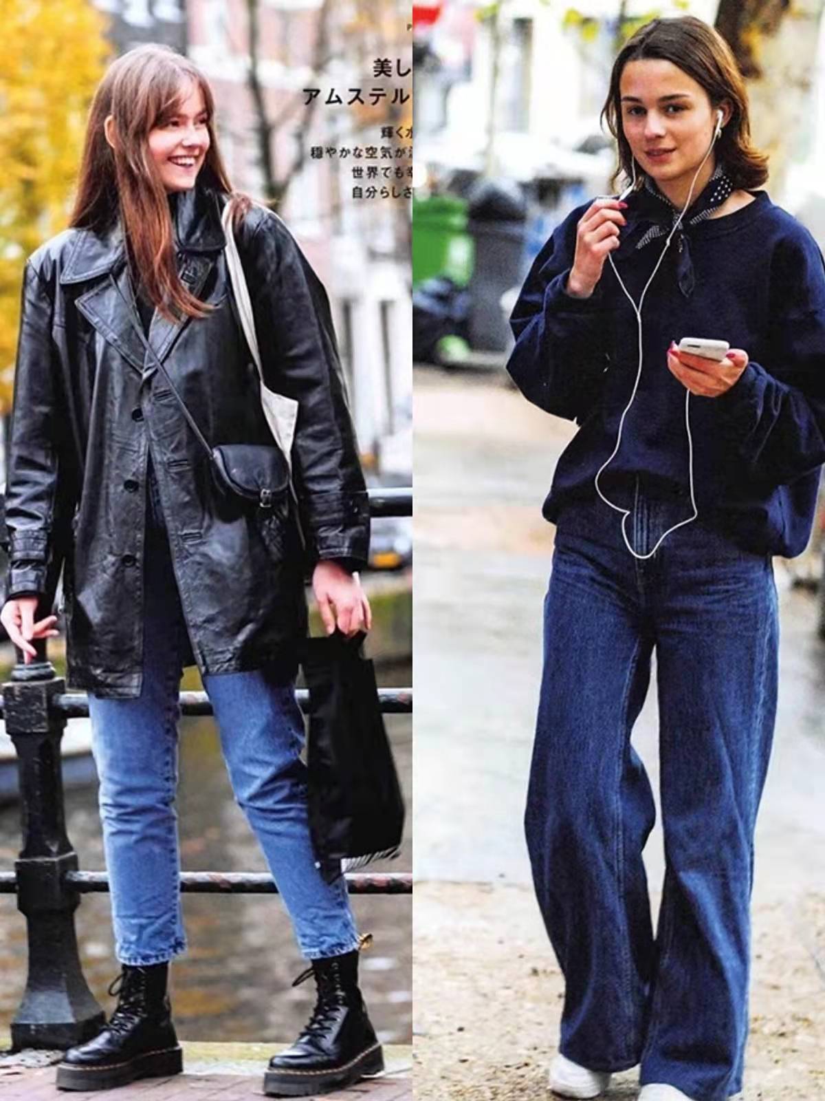 這裡為大家推薦巴黎或者倫敦街拍中最常用到的兩個搭配公式,首先是用大衣組合直筒牛仔褲與短靴。