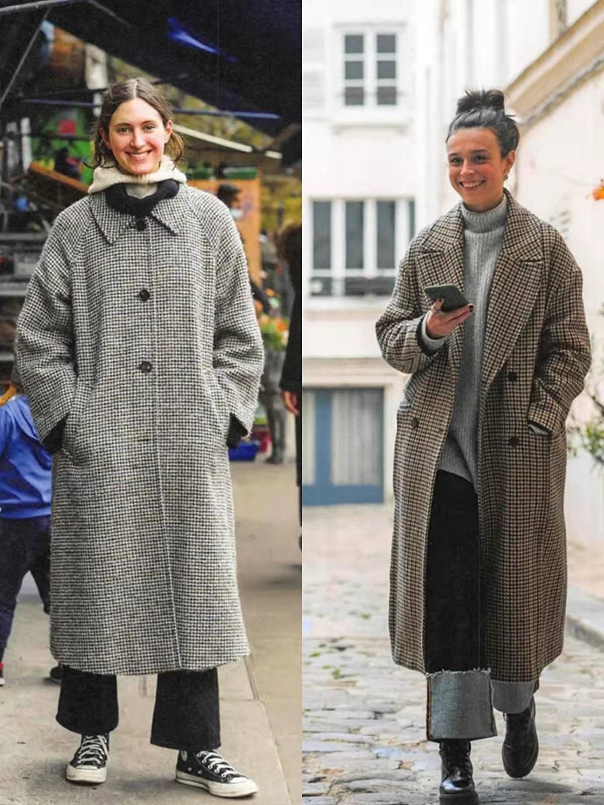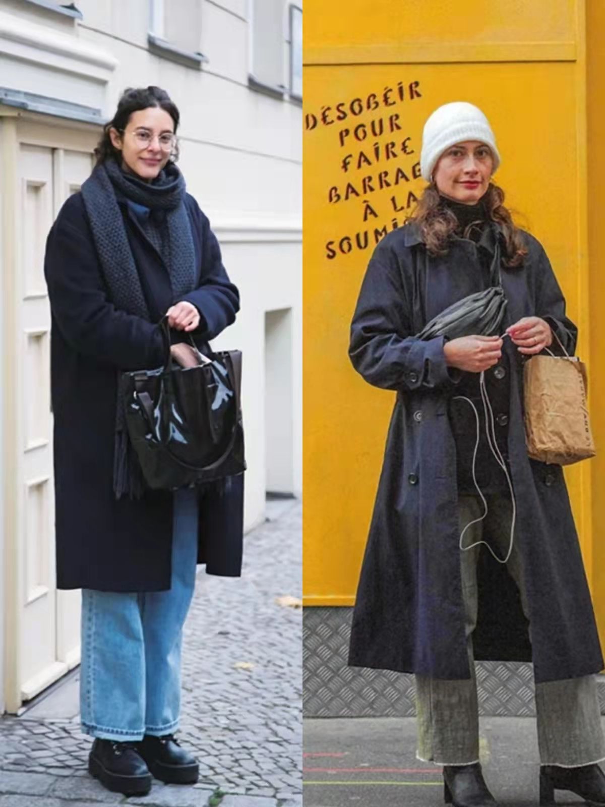 所以在冬季,普通人一定要選擇簡約、合身、利落的單品,像這組街拍中大多會用到大衣、風衣、西服、毛衣、直筒牛仔褲或者打底褲,駕馭起來很簡單。