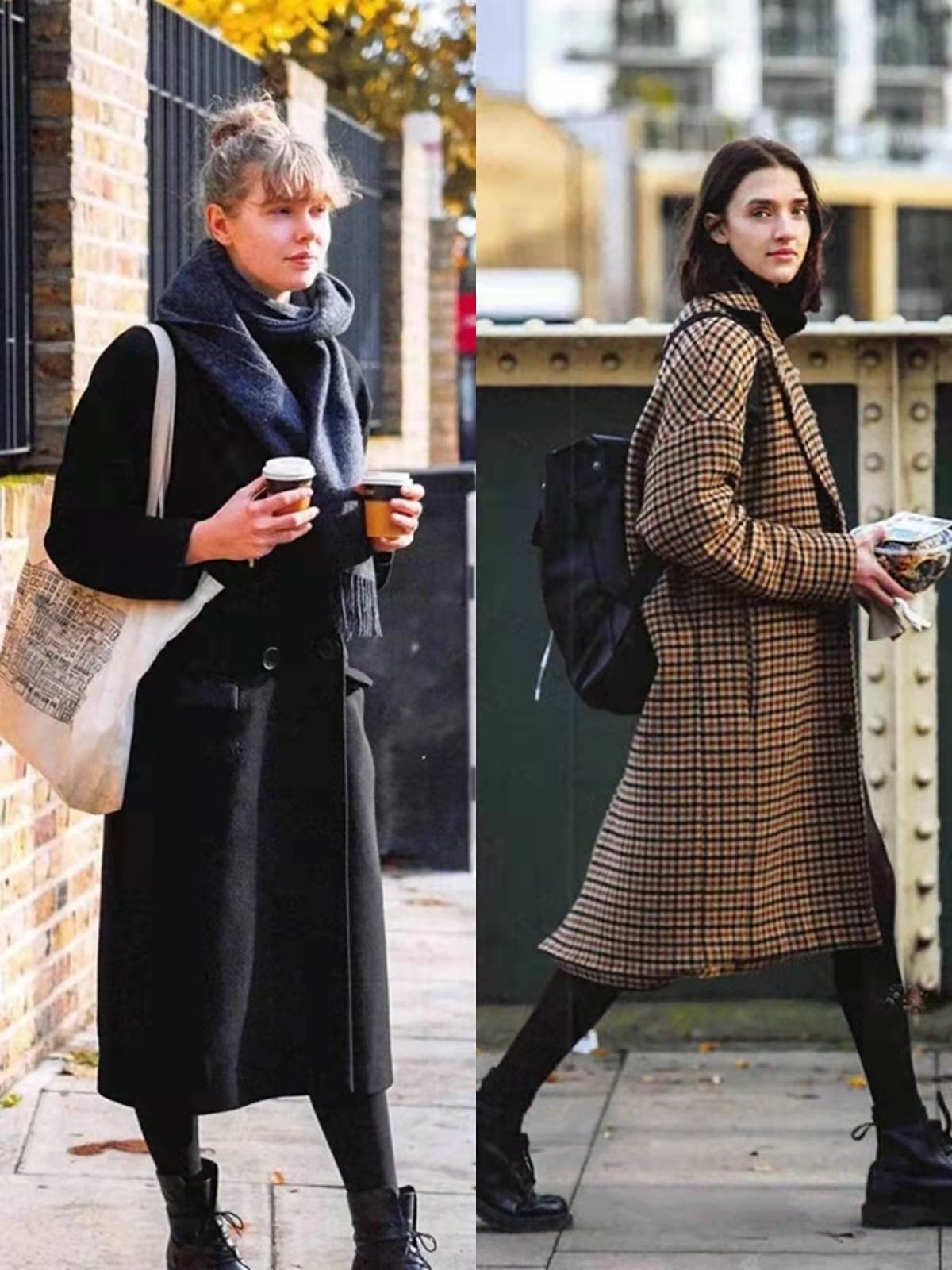 越簡約越高級這一原則在這組街拍中得到充分體現,像穿大衣時除了組合直筒牛仔褲外,黑色打底褲也可以打造張弛有度的造型,且黑色打底褲穿起來更加簡單方便。