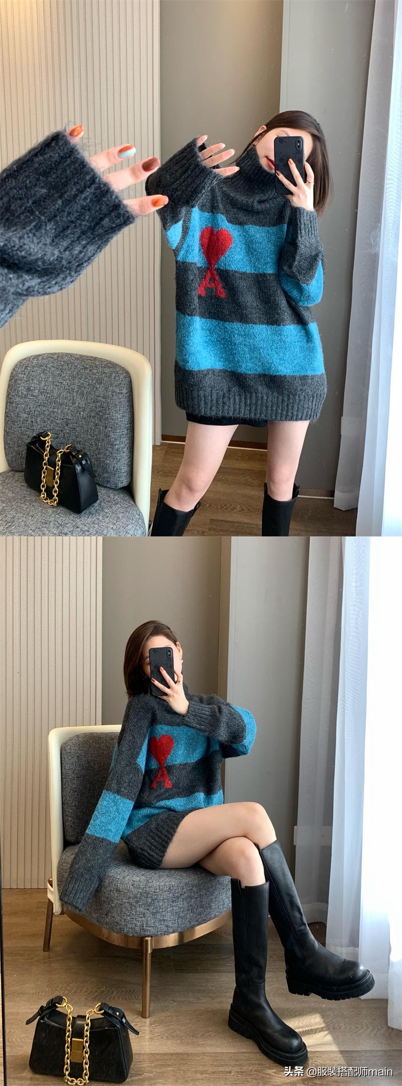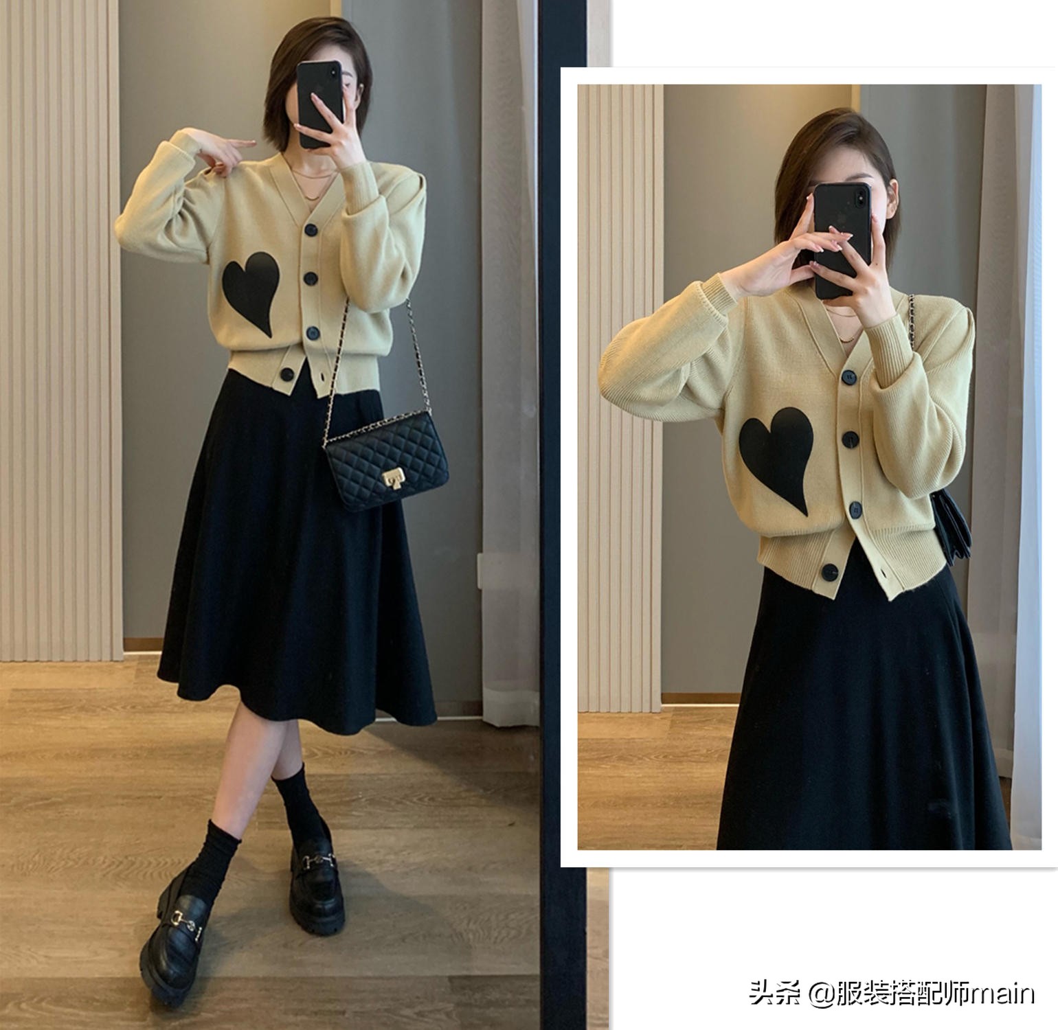 這件開衫同樣加入了一顆愛心,開衫下擺是腰封一樣的設計,遮肉顯瘦還能打造逆天的身材比例。
