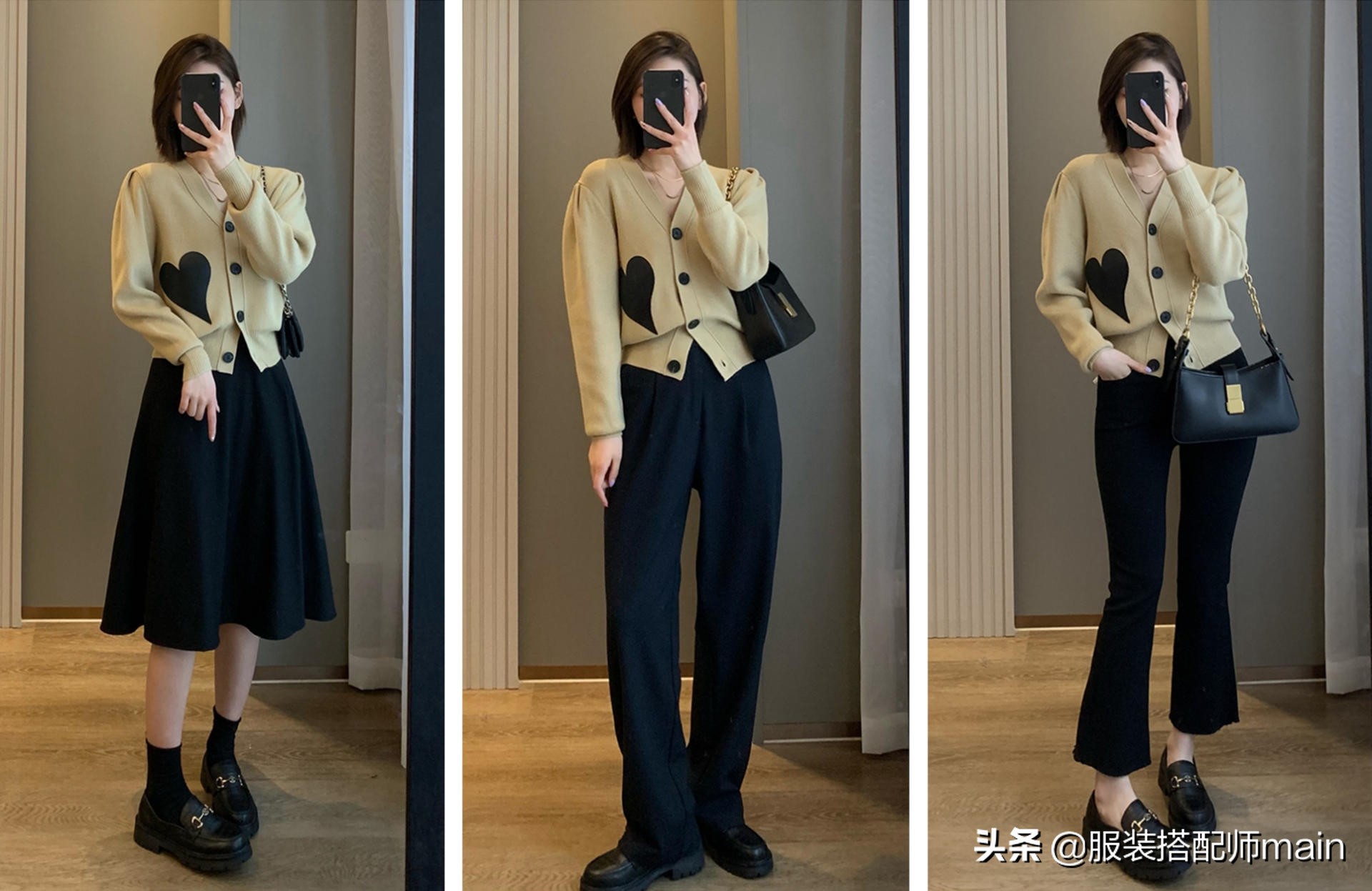 想去約會就搭條半身裙穿,上班穿搭條闊腿褲,休閒時可以換成喇叭褲,出乎意料的百搭吧~