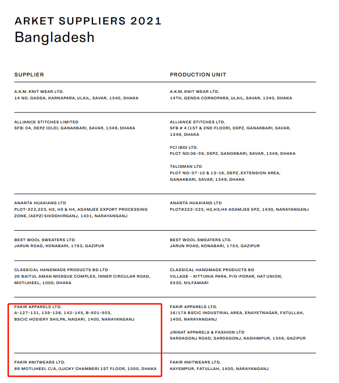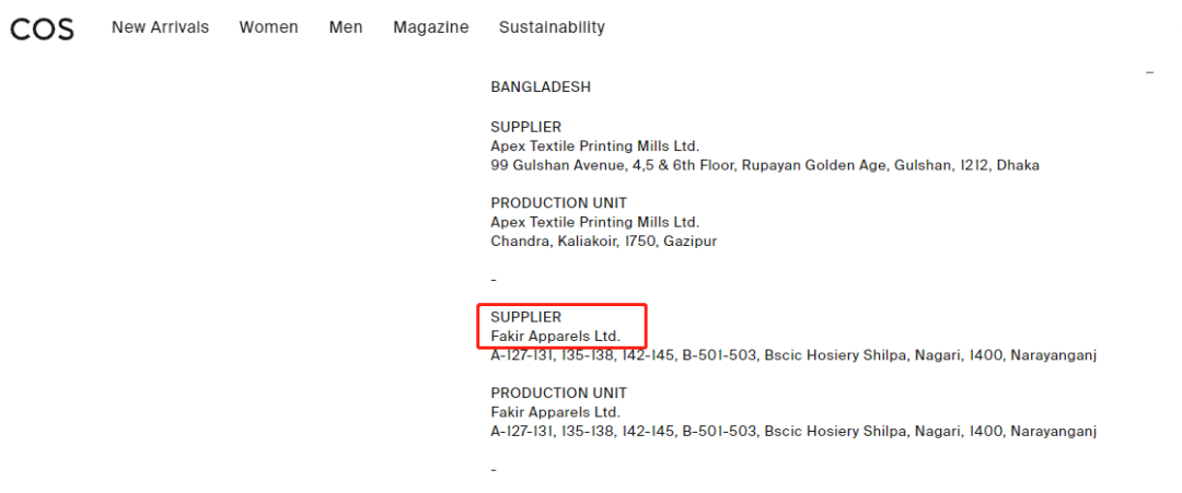我們從品牌官網提供的供應商名錄來看,以H&M集團旗下Cos、Arket與H&M三個品牌相比較。經發現,這三個品牌無論是制造工廠還是面料工廠都發現很多重合的現象。所謂的更好的品質,或許只是作為店鋪裝潢和高昂租金的「陪嫁」。
