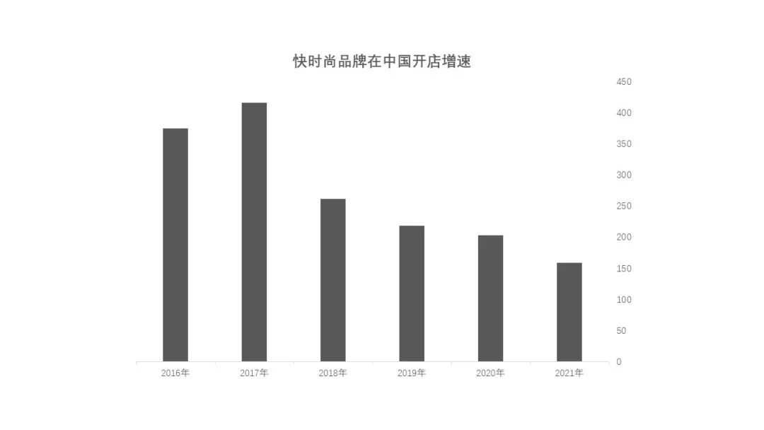 據不完全統計,快時尚年度開新店數在2017年登頂416家,此後三年增速一直為負,到2020年,新增門店甚至跌破200家。
