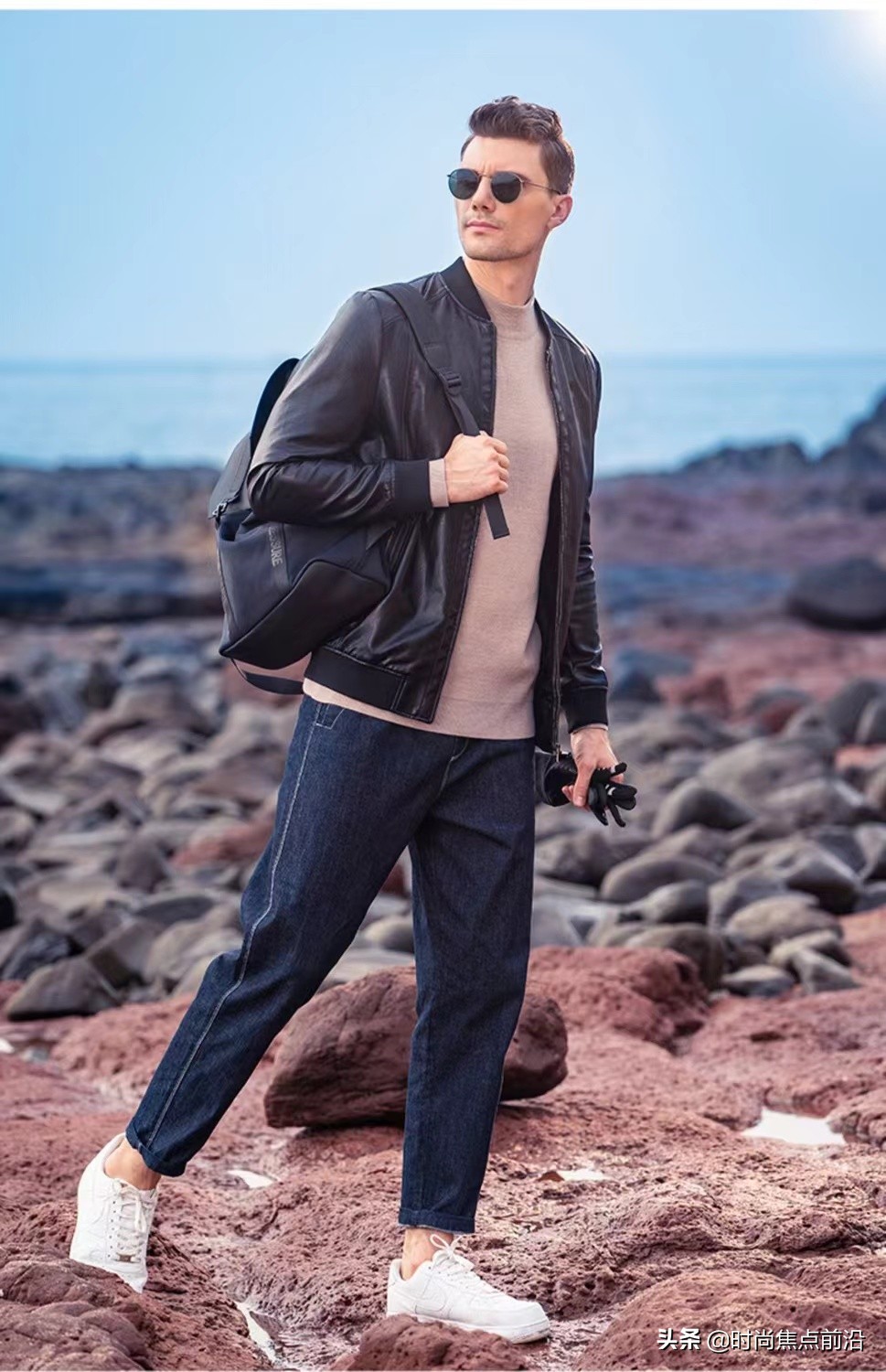 如果在秋季或者冬季不太冷的城市選擇夾克衫搭配毛衣牛仔褲也是非常經典的一種穿搭,簡約而又利落的一種穿搭。