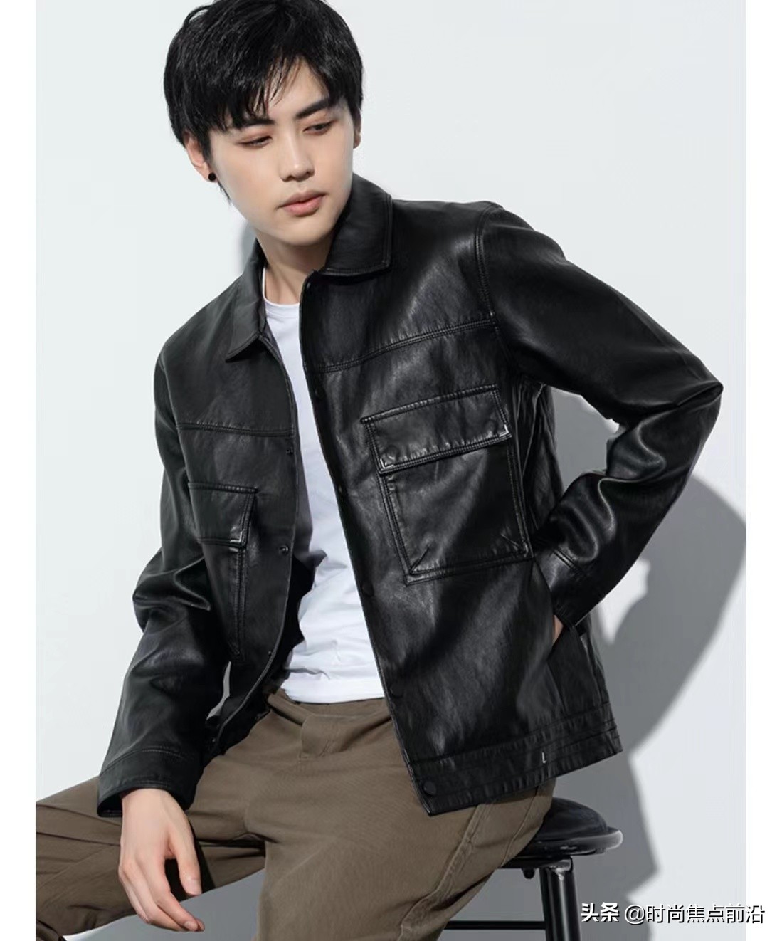 皮衣也有厚薄不同的款式,如果是比較冷的地方就選擇加絨加厚的,溫暖一些的地方選擇單衣也可以,搭配工裝褲,酷感十足的穿搭,給人很硬氣的感覺。