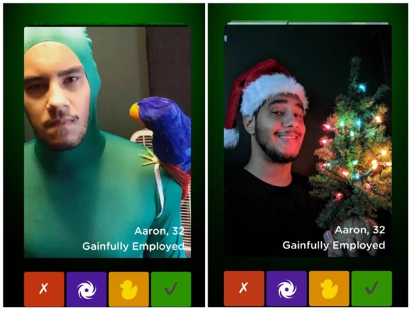 Aaron自己寫了一款交友APP「Singularity」,與眾不同的是,無論左滑右滑多少次,裡面的主人公都是他本人,當然,存在於各種場景、裝束中。
