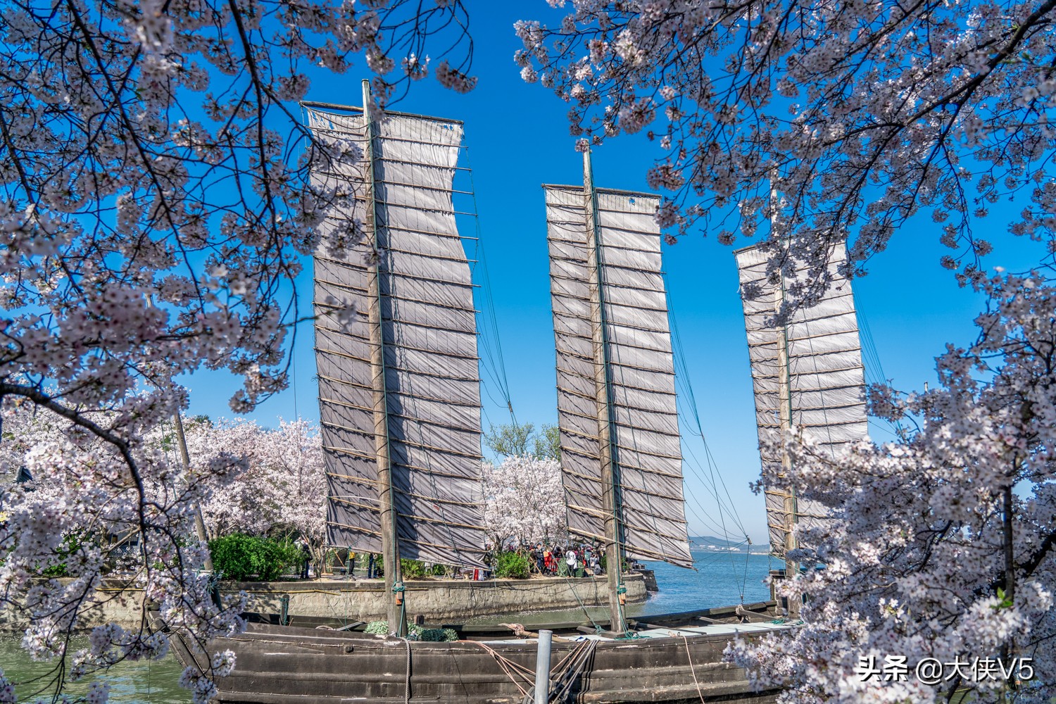 如今的黿頭渚,不僅是全面聞名的賞櫻聖地,更是火爆網路的愛情打卡聖地,就如那句流行網路語,愛她,就帶她去黿頭渚吧!