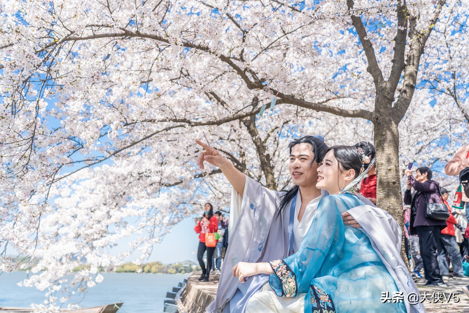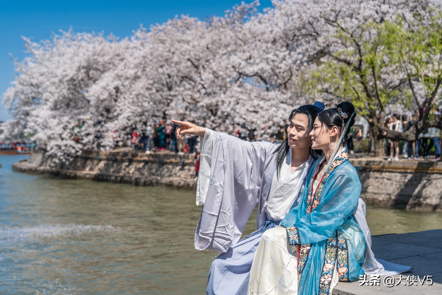 對於喜歡拍照的情侶來說,櫻花和漢服是絕配。所以出發之前,特意買好兩套漢服,穿著漢服撐著油紙傘手拉手漫步櫻花道,引來羨慕的目光無數,我們就是這條道(gai)最靚的仔與女。