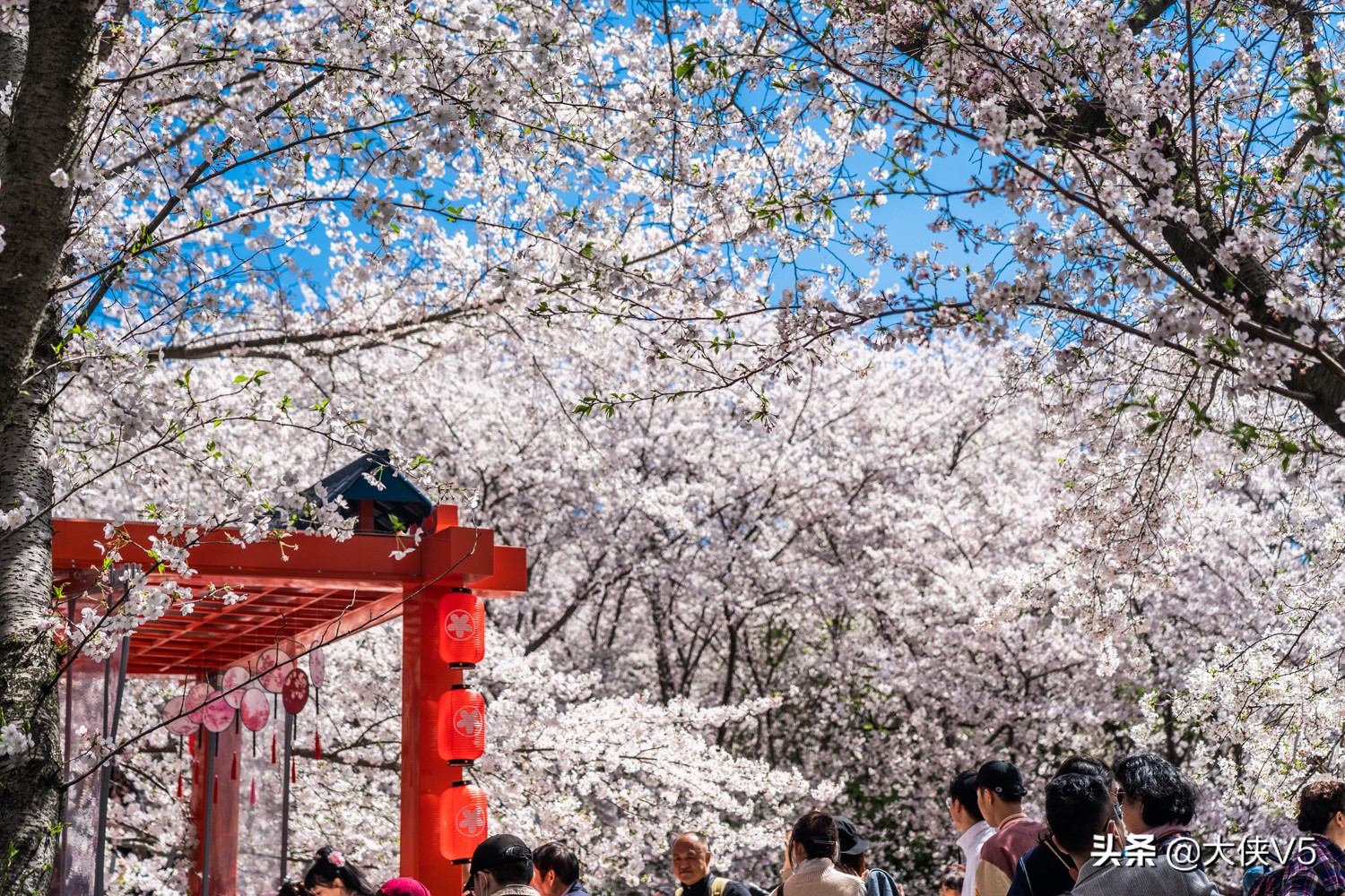 5、櫻花季遊客都很多,所以建議適當的低角度仰視拍攝可避開人群,條件允許的話可帶上一個凳子,女朋友站在凳子上就不會被詬病照片裡的路人甲乙丙了。