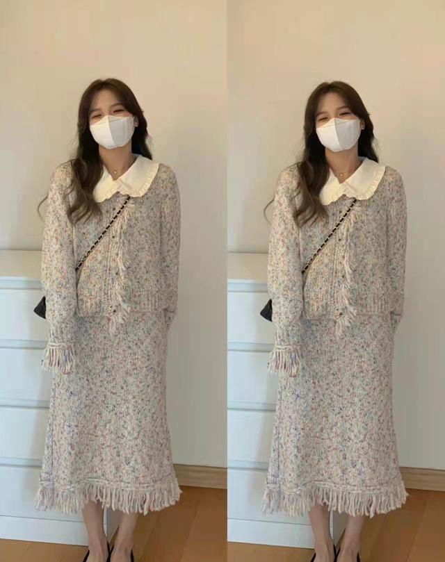 無論是在哪一個季節裡,女生的搭配當中都不能少得了裙子,半身裙也可以採用套裝的搭配方式,流蘇的設計讓人覺得十分的有女生味。套裝設計整體的面料和花紋都讓人覺得十分青春,淺色系更顯膚色。