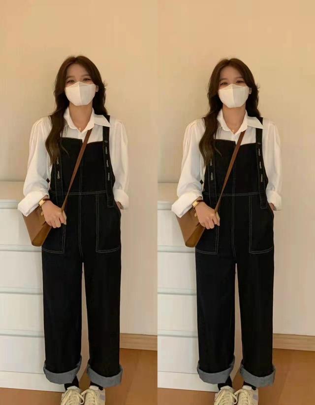在搭配的過程當中也不用太為難,簡單一些,利用背帶褲搭配襯衫,基礎款,基礎色之間的配合程度會更高。