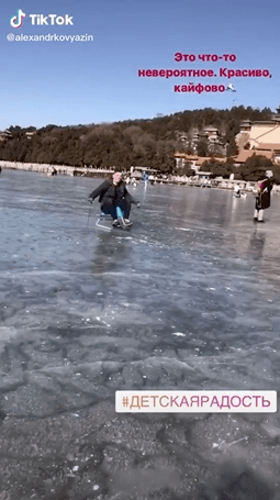 對於冰雪運動的熱情也感染了很多生活在大陸的外國友人。來自俄羅斯的創作者Kovyazin分享了一段在頤和園昆明湖劃冰車的視訊,他在冰面上快速滑行,玩得不亦樂乎。冰車在北方省份很常見,即使不會滑冰,也能揮灑自如。