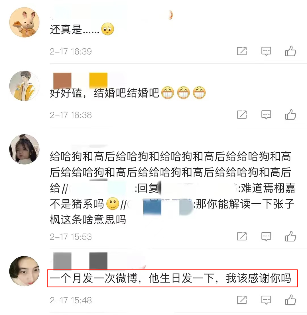 這一組動態讓很多網友都破防了,還有人表示張子楓一個月就發一次動態,居然還是卡著點為他慶生的照片。