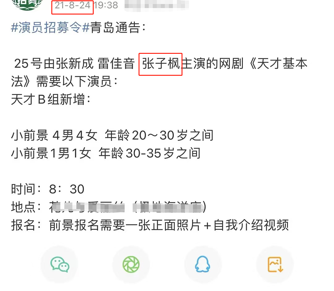 據悉,去年8月份張子楓在青島拍攝《天才基本法》。