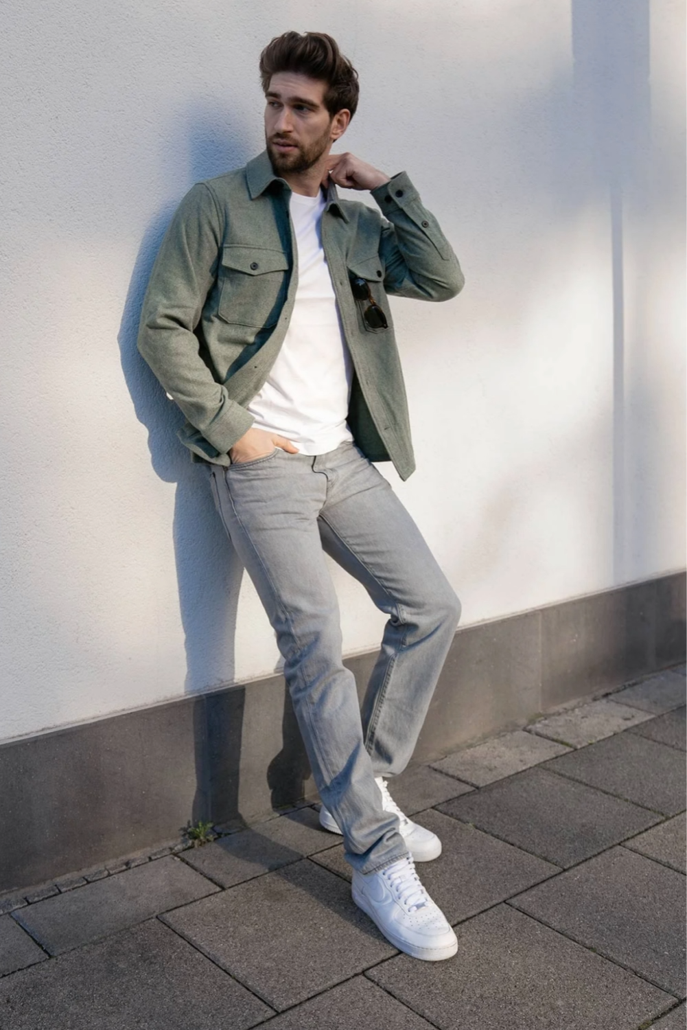 值得大家注意的是,雖然工裝襯衫的顏色不一樣,但風格魅力統一,看起來休閒又簡約。而且為了不破壞工裝襯衫自身魅力,我們搭配內搭時,最好可以搭配純色T恤,這是一種與工裝襯衫風格相似的單品,二者進行搭配,輕鬆打造出格調十足的極簡穿搭。